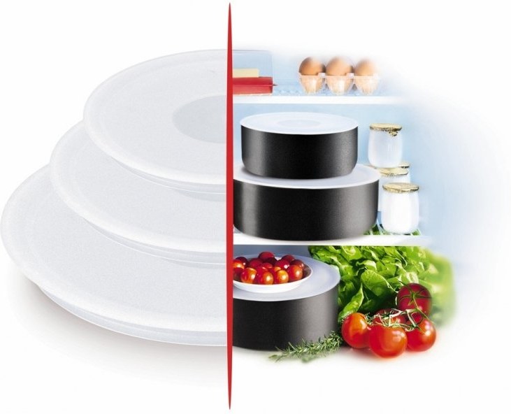 Sada troch plastových viek na hrnce Tefal Ingenio. Pre ľahké a rýchle uskladnenie uvarených pokrmov. Priemer 16, 18, 20 cm.* Sada 3 viek L9019222 INGENIO