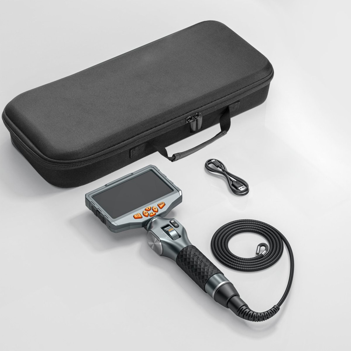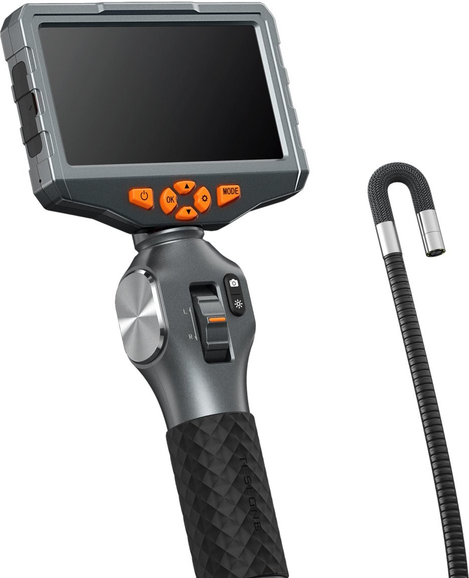 Profesionálny endoskop Teslong TD500 s manuálnym ovládaním uhla kamery a veľkým, prehľadným displejom je vhodný na použitie v širokom spektre priemyselných odvetví.Jednoduché ovládanie smeru kamery
