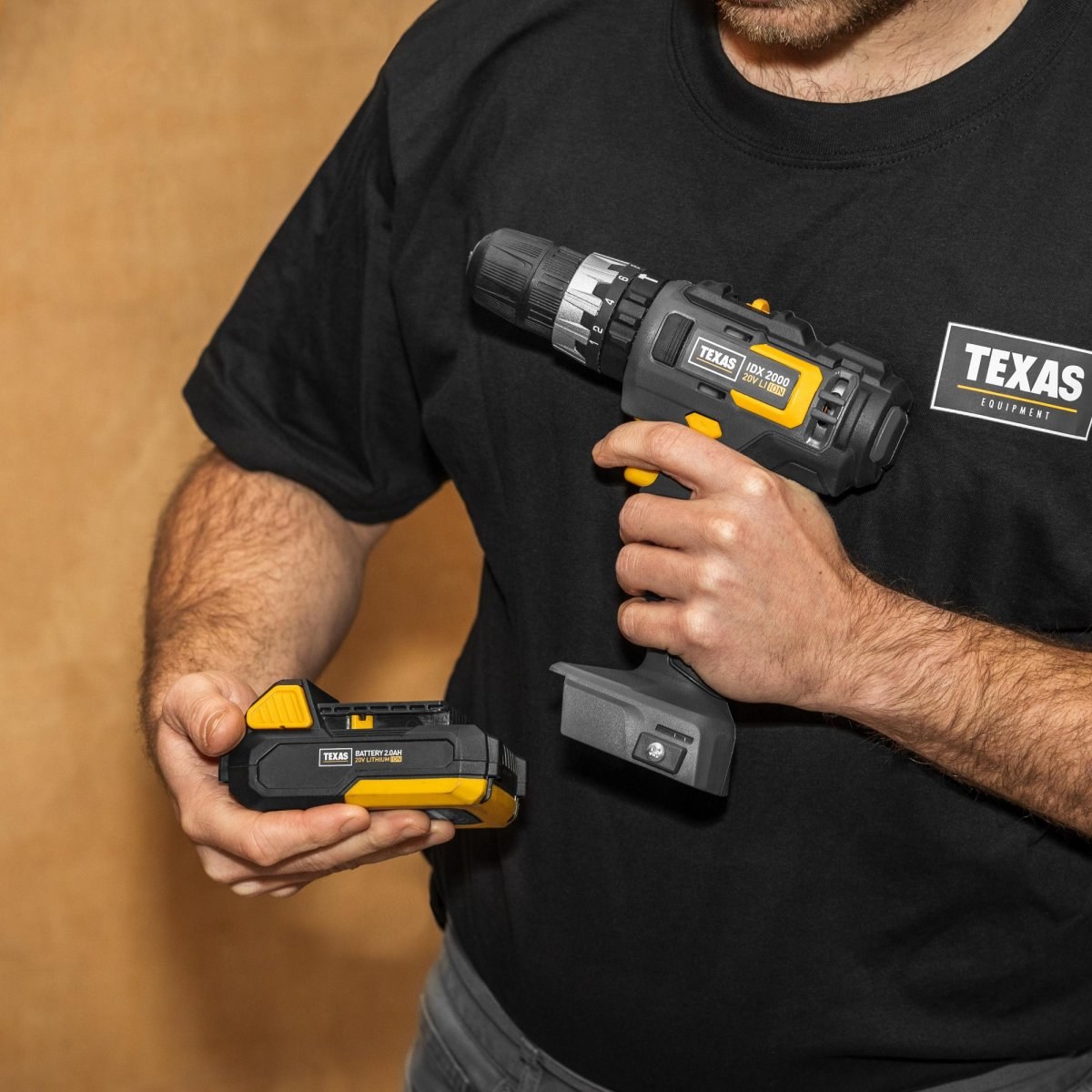 Akumulátorová príklepová vŕtačka TEXAS IDX2000 je založená na novo vyvinutej 20V platforme, ktorá zahŕňa širokú škálu akumulátorových záhradných strojov.