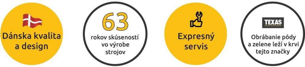 PRED VÝBEROM KOSAČKY NA TRÁVUTEXAS je 100% dánska rodinná firma, ktorá vyrába záhradnú techniku od roku 1960. Všetko to začalo so záhradnými kultivátormi, no dnes sa sortiment rozšíril na všetky typy motorových záhradných strojov (elektrický, batériový a benzínový pohon). Hrdé tradície sa začali v továrni v Dánskom Odense, kde dodnes sídli. TEXAS vlastní 2 továrne, ktoré vyrábajú väčšinu našich záhradných strojov. To dáva plnú kontrolu nad vývojom, kvalitou a kontrolou, ako aj zodpovednú a modernú výrobu.