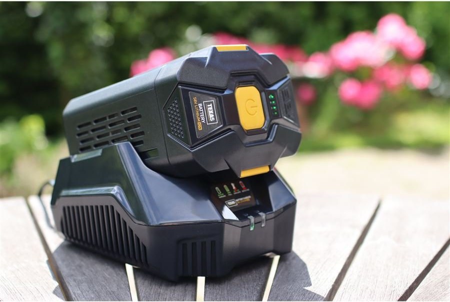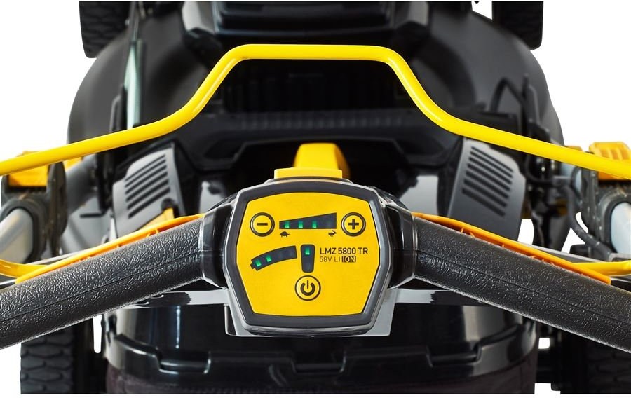 Výkonná kosačka TEXAS LMZ5800TR s vlastným pojazdom, s priloženou batériou 58V / 4,0Ah, poskytuje až 400 m2 kosačky na jedno nabitie v závislosti od podmienok: dĺžka a vlhkosť trávy, výška kosenia, spôsob kosenia (mulčovanie, zber) a rýchlosť jazdy. Ak sa nepoužije funkcia vlastného pohonu, môžete dosiahnuť 600 m2. V motorovej jednotke je miesto pre 2 batérie, z ktorých jedna je na uloženie prídavnej batérie. Úplné nabitie batérie trvá 120 minút. Tento model má variabilnú rýchlosť pojazdu, ktorá sa nastavuje elektronicky na paneli na riadidlách. Zobrazuje sa tu aj stav batérie (indikátor batérie). TEXAS LMZ 5800 má funkciu 2v1: Má veľký 60-litrový zberný kôš, ktorý efektívne zbiera trávu a s priloženým sitom na mulčovanie možno vykonávať biokosenie. Dodáva sa s oceľovým štítom, ktorý je extrémne trvácny a odolný voči kamienkom atď. Akumulátorová kosačka sa ľahko štartuje, stačí stlačiť tlačidlo a aktivovať štartovaciu lištu. Výška kosenia sa nastavuje centrálne (1 rukoväť) od 40 do 100 mm a rukoväte je možné nastaviť do 2 výškových polôh. Je tiež jednoduché sklopiť riadidlá, takže kosačka zaberie menej miesta a možno ju uložiť vertikálne. Ďalej je na riadidlách šikovný držiak na fľašu, takže sa môžete občerstviť so sebou. Kosačka váži menej ako podobný benzínový model a preto sa s ňou ľahšie manévruje po záhrade. Bezpečnosť je zabezpečená špeciálnym kľúčom, ktorý zabráni neoprávneným osobám / deťom spustiť stroj, ak bol kľúč vytiahnutý.