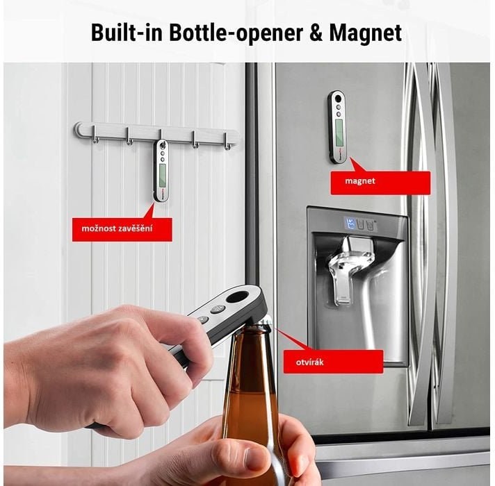 teplomer kuchynský, 2v1, 2 sondy, skladacia sonda na tele teplomera, káblová sonda, vstavaná nabíjateľná batériaZobraziť viac