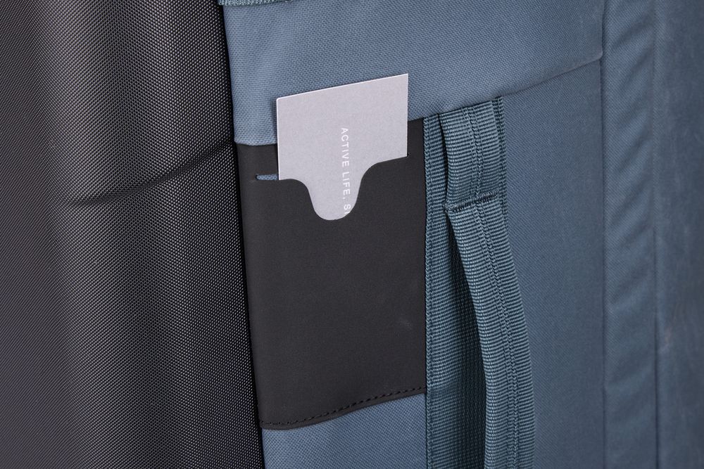 Vonkajšia tkanina a podšívka sú vyrobené zo 100% recyklovaného polyestru z recyklovaných plastových fliaš, zatiaľ čo polykarbonátová zadná časť je vyrobená z 50% recyklovaného materiálu.