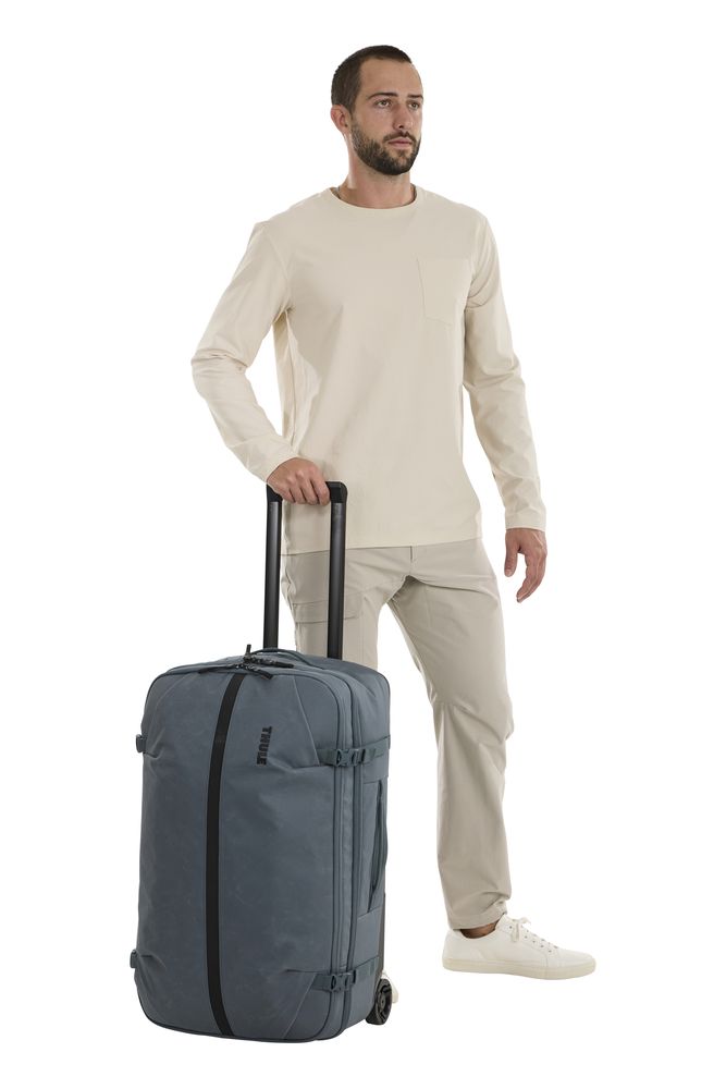 Cestovný kufor na kolieskach Thule Aion je priestorný kufor na odbavenie, ktorý udržuje všetky vaše veci organizované a chránené vďaka odolnému a vodeodolnému voskovanému plátnu, veľkému vrecku, ktoré sa dá ľahko čistiť pri ušpinení od mokrých a špinavých predmetov, a vonkajším a vnútorným kompresným popruhom.