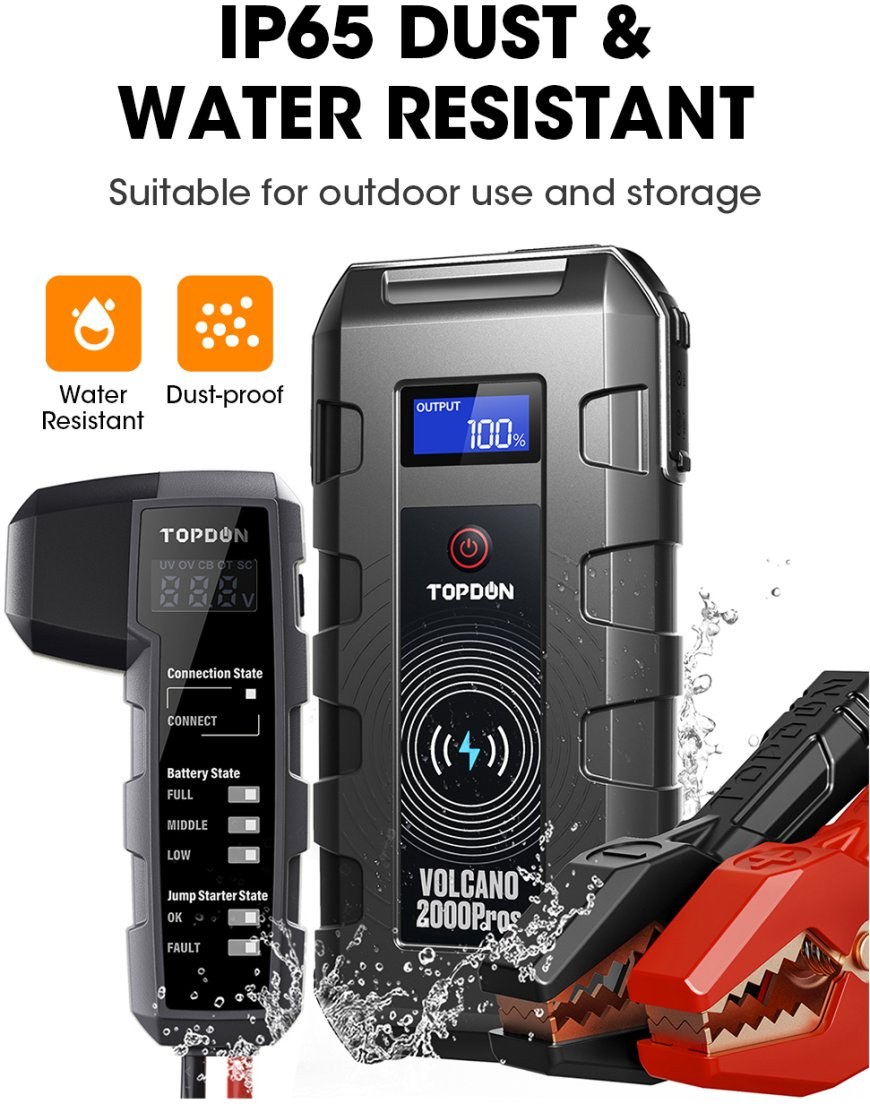 Maximálne spoľahlivý a výkonný car jump štartér Volcano 2000Pros s kapacitou batérie 20800mAh a startovacím preudom až 2000A.Komplexné riešenie pre startovanie a testovanie akumulátora vozidla. Tento startovací zdroj akumulátorov so špičkovým preudom až 2000A poskytuje prenosné napájanie s funkciami testovania akumulátora, ktoré odhalia akékoľvek elektrické problémy a stav batérie pred samotným štartom, alebo nabíjaním testovanej batérie.