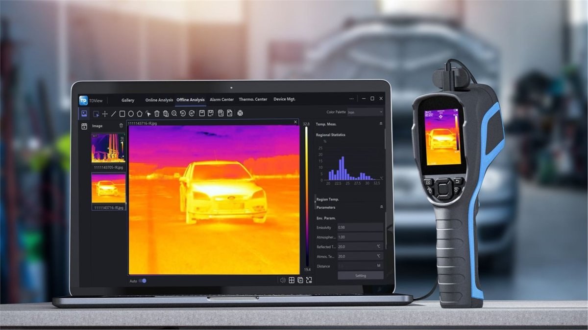 TC005 ponúka široký rozsah merania teploty -20 °C - +550 °C. Meranie teploty s presnosťou ±2°C. NETD (Noise-equivalent temperature = Šumovo ekvivalentná teplota je mierou citlivosti detektora tepelného žiarenia v infračervenej, terahertzové alebo mikrovlnné časti elektromagnetického spektra.) Tohto vysoko presného infračerveného senzora je menšia ako 40 mK, presnosť merania je 0,1 stupňa a chyba je menšia ako 2 %. Tieto špecifikácie Vám zaistia čo najpresnejšie meranie teploty.PC analýza a okamžitá projekcia obrazu