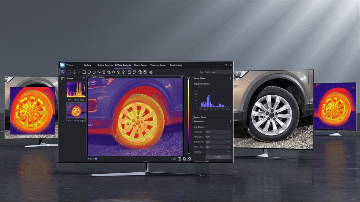 Kamera je pripravená analyzovať scenáre ako v samostatnom režime, tak v režime zobrazenia obrazu na PC v reálnom čase, čo tiež umožňuje zaznamenané snímky ihneď nahrávať z TC005 do počítača a ďalej s nimi pracovať.Štyri zobrazovacie režimy