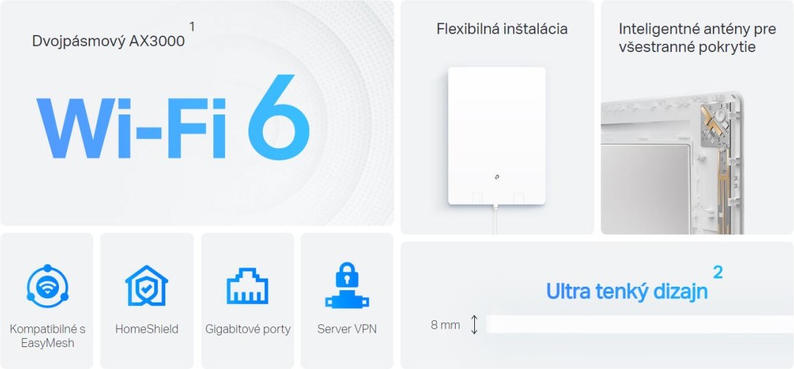 zľavaultra tenký dizajn, nová generácia Wi-Fi 6, inteligentné antény, ultra nízka latencia, TP-Link HomeShield