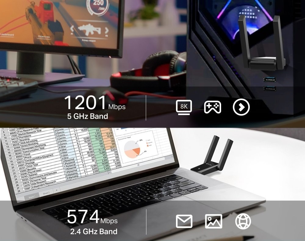 AX1800 Dual Antennas High Gain Wireless USB Adaptér Archer TX30U Plus