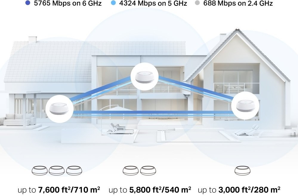 Tri Band Wi-Fi BE11000: 6 GHz: až 5764 Mb/s, 5 GHz: až 4324 Mb/s, 2,4 GHz: až 688 Mb/s