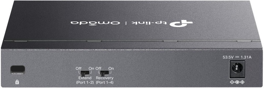 Pokročilé funkcie: Extend Mode (porty 1–2), PoE Auto Recovery (1–4), Flow Control, QoS