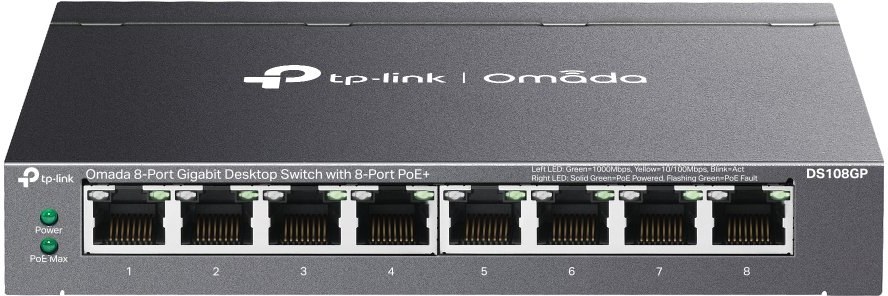 Štandardy: IEEE 802.3af, 802.3at, 802.3x, 802.1p, IEEE 802.3zPočet portov: 8× RJ45 (10/100/1000 Mbps)