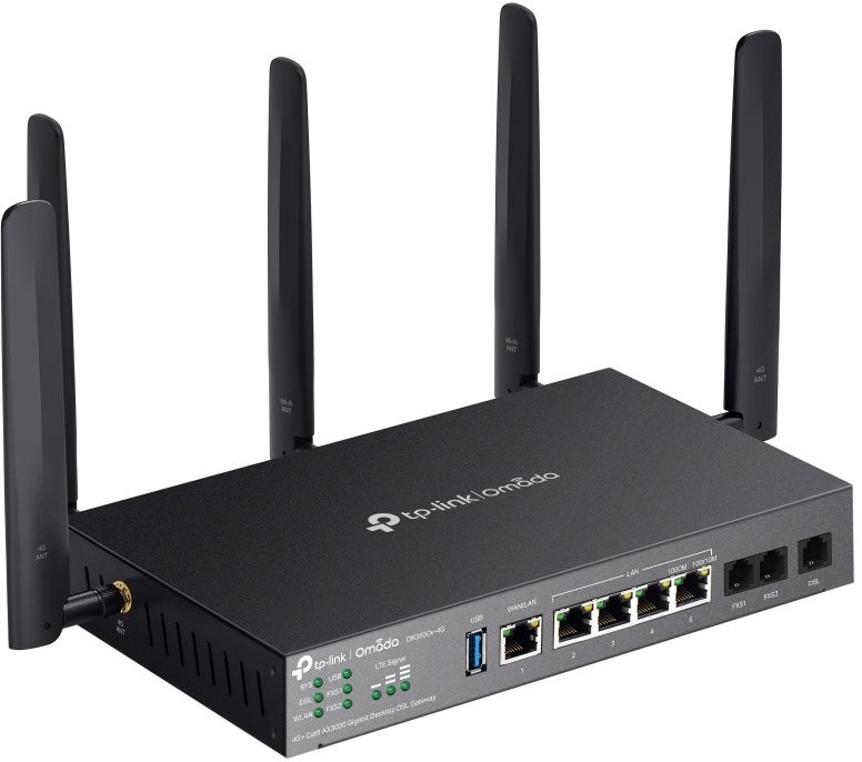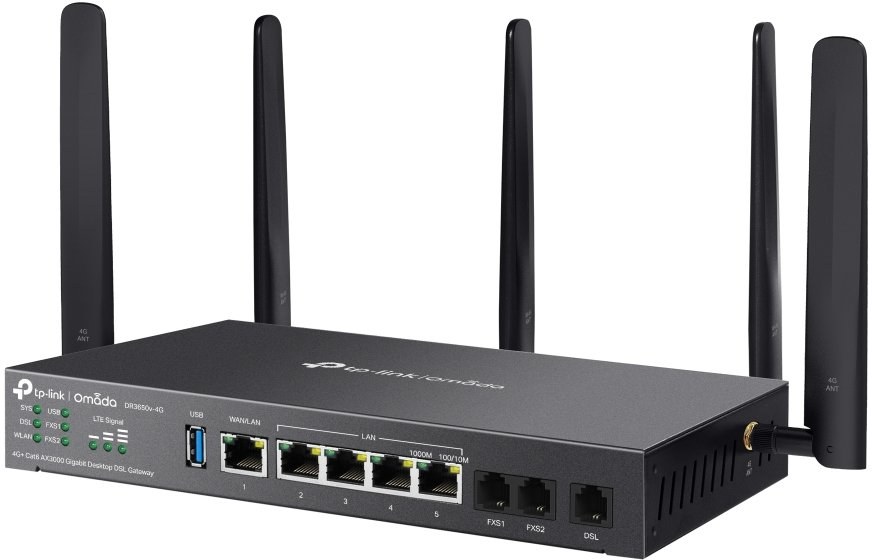HardvérRozhranie: 1× gigabitový WAN/LAN port, 4× gigabitové LAN porty, 1× DSL port, 2× FXS porty, 1× USB 3.0, 2× sloty Nano SIM (4G+ Cat6)