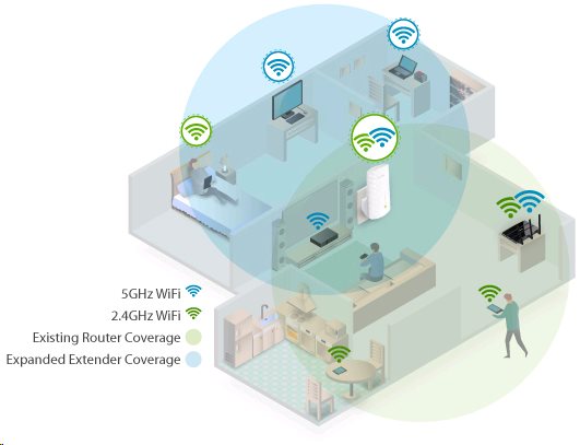 jednoduché rozšírenie pokrytia wifi signálom na 2 pásma až do rýchlosti až 750 Mbit