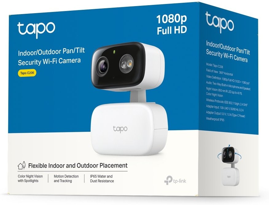 TP-Link Tapo C206 je inteligentná bezpečnostná Wi-Fi kamera navrhnutá pre flexibilné použitie v interiéri aj exteriéri. Vďaka certifikácii IP65 je odolná voči vode a prachu, čo z nej robí ideálne riešenie pre sledovanie domácnosti, záhrady, vchodu či garáže. Kompaktný dizajn umožňuje jednoduchú inštaláciu na stenu, strop, stôl alebo dokonca na tyč, čím sa prispôsobí akémukoľvek priestoru.