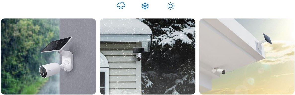 Tapo C425 KIT je navrhnutá tak, aby odolávala náročným vonkajším podmienkam. Kamera má IP66 odolnosť voči prachu a vode, zatiaľ čo solárny panel má IP65 odolnosť. To znamená, že kamera môže fungovať spoľahlivo aj v daždi, snehu alebo prašnom prostredí. Táto robustná konštrukcia zaručuje dlhodobú ochranu a výkon.
