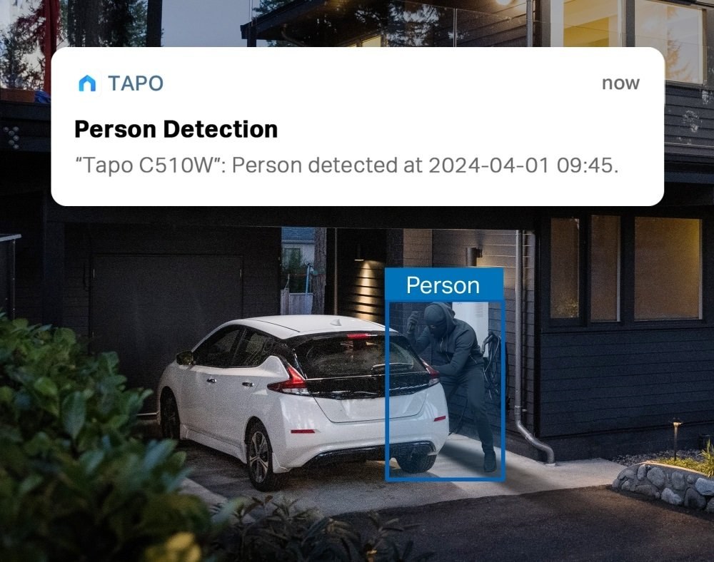 Kamera využíva inteligentnú AI detekciu osôb, ktorá minimalizuje falošné poplachy a okamžite vás upozorní prostredníctvom aplikácie Tapo. Pre zvýšenie bezpečnosti je vybavená zvukovým a svetelným alarmom, ktorý môžete prispôsobiť vlastným zvukom a intenzitou svetla. Tapo C510W je ideálna na odradenie neželaných návštevníkov.