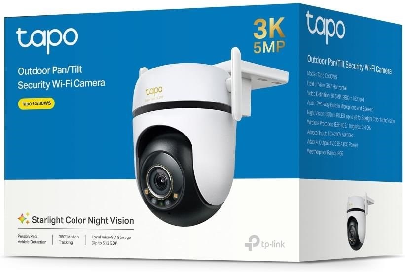 TP-Link Tapo C530WS je vybavená 3K rozlíšením (2880 × 1620), ktoré poskytuje krištáľovo čistý obraz. Vďaka technológii Starlight Color Night Vision dokáže kamera zachytiť farebné zábery aj v úplnej tme, čo zaručuje maximálnu bezpečnosť a prehľadnosť v každej situácii.
