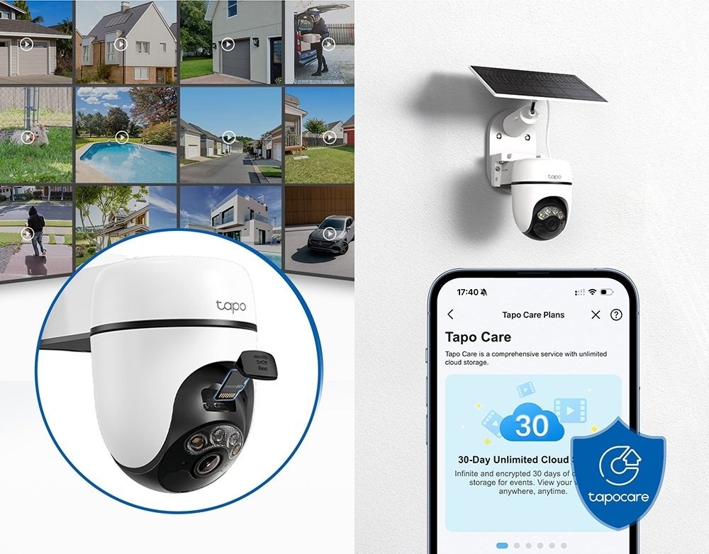 Kamera je navrhnutá pre vonkajšie použitie s certifikáciou IP65, čo znamená odolnosť voči dažďu, prachu, snehu aj silnému slnečnému žiareniu. Pre ukladanie záznamov sú k dispozícii tri možnosti: lokálne úložisko na microSD kartu s kapacitou až 512 GB, cloudová služba Tapo Care alebo pripojenie k sieťovému úložisku. Vďaka obojsmernému zvuku môžete komunikovať s návštevníkmi alebo kuriérmi, a to aj keď nie ste doma.