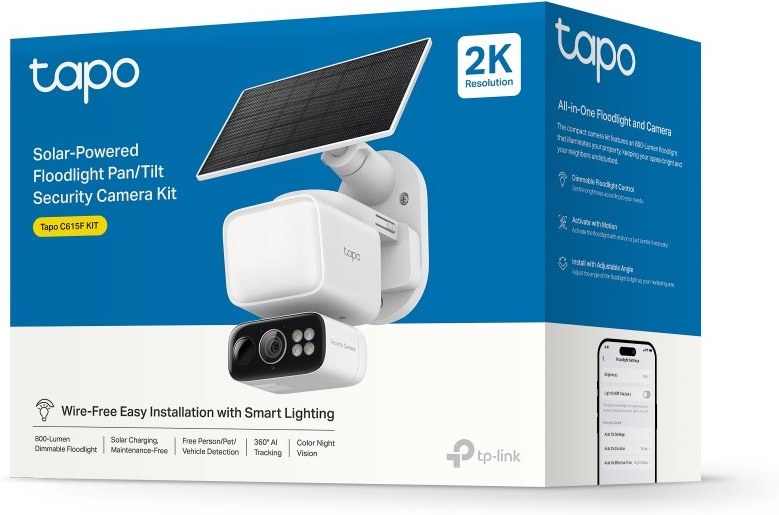 TP-Link Tapo C615F KIT predstavuje komplexný set, ktorý spája inteligentný reflektor, panoramatickú bezpečnostnú kameru a solárny panel pre úplne bezdrôtovú prevádzku. Vďaka 800-lúmenovému reflektoru poskytuje jasné a široké osvetlenie pri detekcii pohybu, čo zvyšuje bezpečnosť okolo domu bez nadmerného oslňovania okolia. Súčasne 2K (3MP) rozlíšenie kamery zabezpečuje ostrý obraz vo dne aj v noci, pričom technológie na správnu expozíciu zaručujú detailný prehľad aj v náročných svetelných podmienkach.