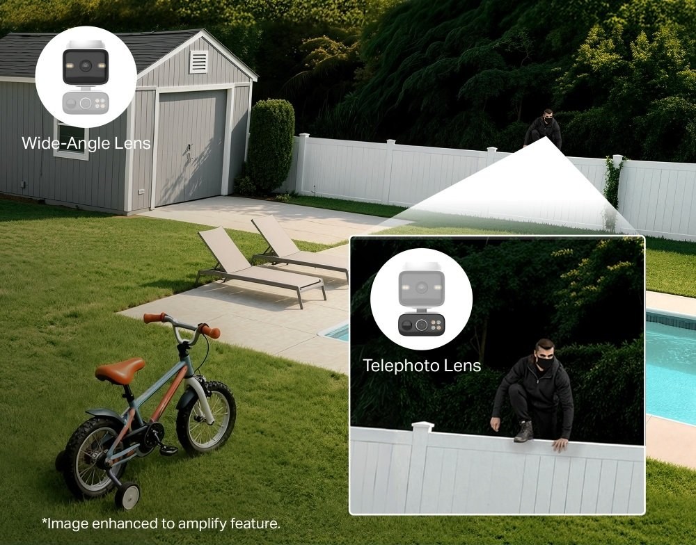 TP-Link Tapo C645D KIT prináša prelomové riešenie v domácom zabezpečení vďaka svojej unikátnej duálnej optike. Horný pevný objektív so širokým pozorovacím uhlom neustále stráži celú scénu, zatiaľ čo spodný objektív s funkciou Pan/Tilt (otáčanie a nakláňanie) sa stará o detailné zachytenie objektov. Táto kombinácia odstraňuje slepé miesta – zatiaľ čo jedna šošovka stráži celkový prehľad, druhá sa môže dynamicky otáčať za pohybom, čím získate vizuálny dôkaz z viacerých perspektív súčasne.