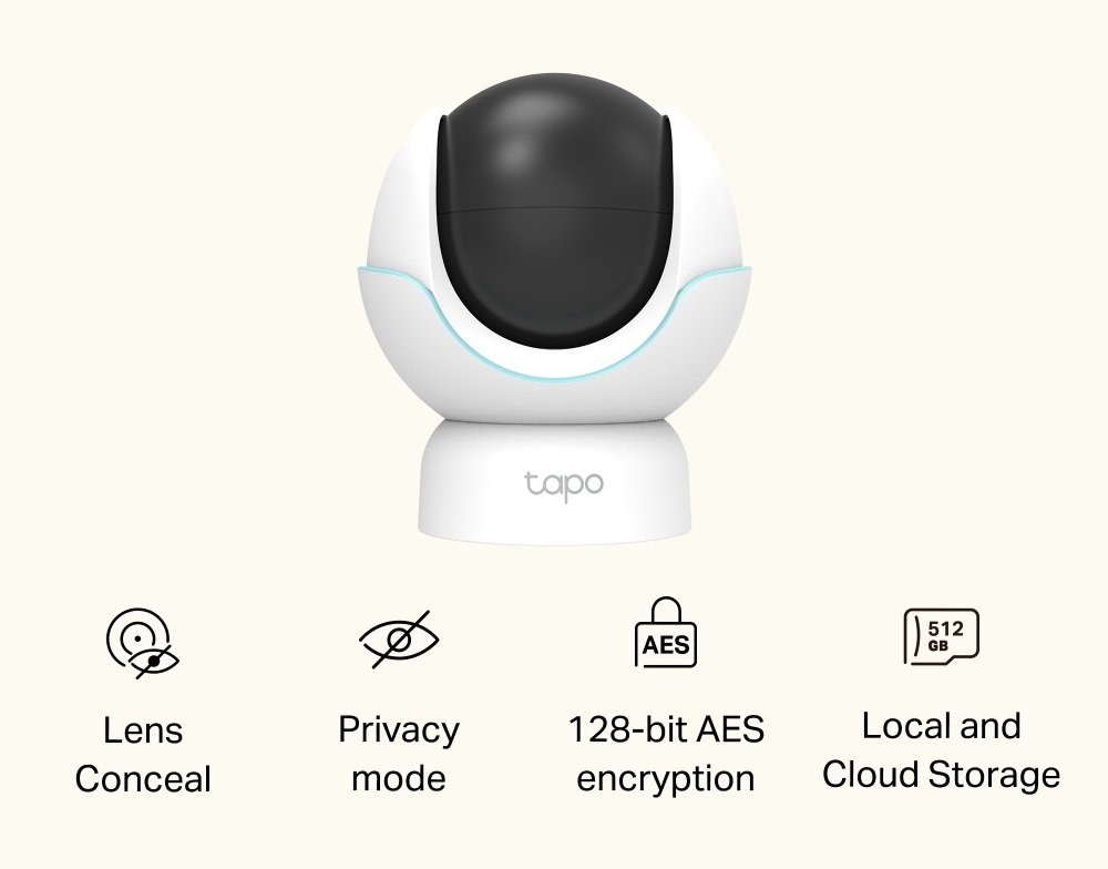 Kamera podporuje lokálne aj cloudové úložisko (microSD karta až do 512 GB), pričom všetky dáta sú šifrované pomocou 128-bitového AES štandardu. Funkcia Privacy Mode umožňuje fyzicky zakryť objektív alebo nastaviť súkromné zóny, ktoré sa nebudú monitorovať. Tapo C840 je kompatibilná s Google Assistant, Amazon Alexa, Apple HomeKit a Samsung SmartThings, čo zaručuje jednoduchú integráciu do vašej smart domácnosti.
