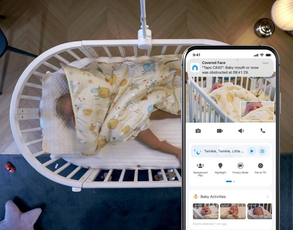 Kamera využíva pokročilú AI na detekciu plaču, zakrytého tváre či opustenia bezpečnostnej zóny. Tapo C840 vás okamžite upozorní, ak sa dieťa prebudí, zakryje si tvár alebo sa pohne mimo určený priestor. Funkcia Baby Tracking automaticky sleduje pohyb dieťaťa, aby bolo vždy v zábere. Vďaka Sleep Analysis získate prehľad o spánkových návykoch dieťaťa, vrátane dĺžky spánku, času zaspania a prebudení.