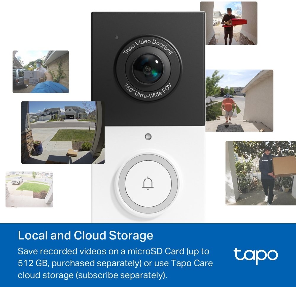 Ukladajte záznamy lokálne na kartu microSD (až 512 GB, predáva sa samostatne) alebo k nim pristupujte vzdialene pomocou cloudového úložiska Tapo Care (vyžaduje predplatné).