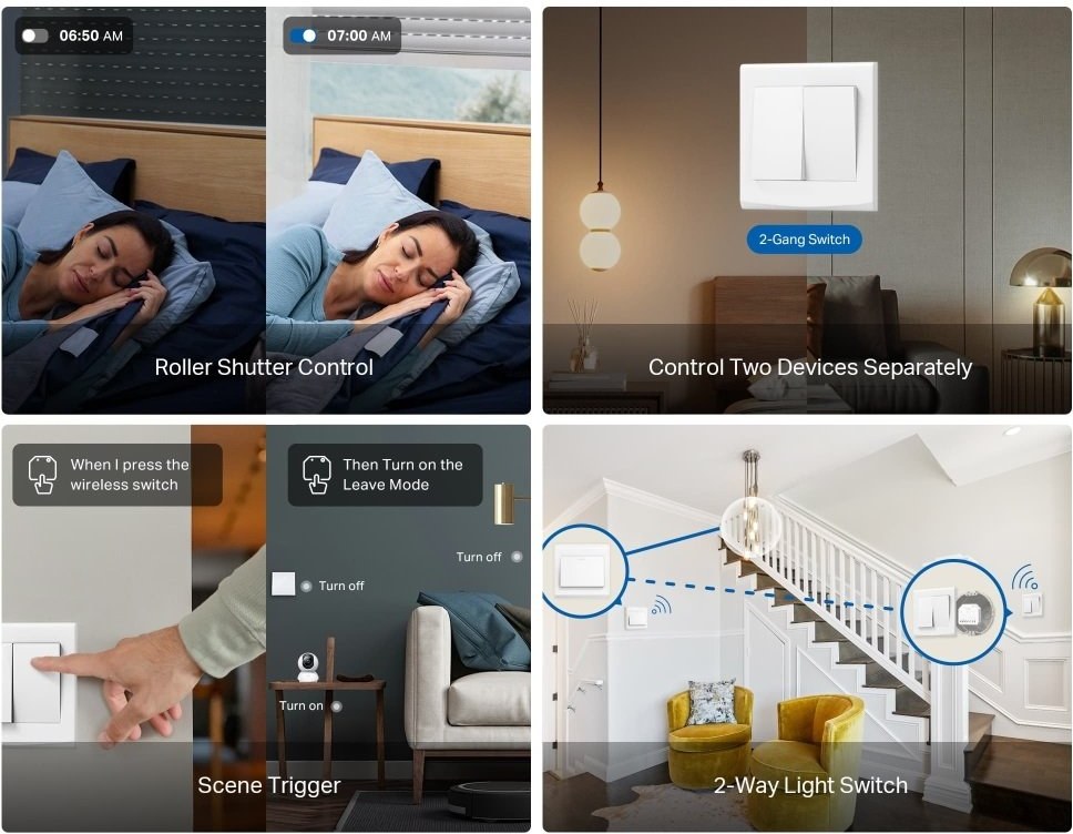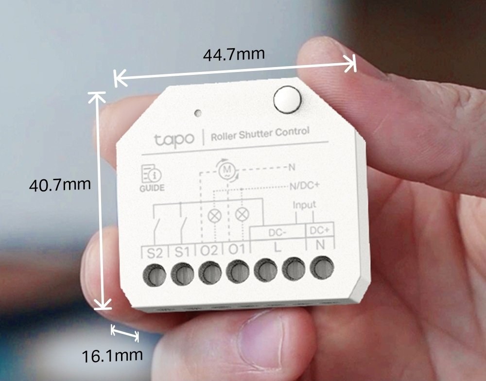 S rozmermi len 44,7 × 40,7 × 16,1 mm je Tapo S112 navrhnutý tak, aby sa zmestil aj do najmenších elektroinštalačných krabičiek – za vypínače, zásuvky či svetlá. Vďaka tomu je ideálny pre rekonštrukcie aj nové inštalácie bez nutnosti výmeny existujúcich zariadení. Modul umožňuje vytvárať scény a automatizácie, ako napríklad „režim odchodu“ jedným kliknutím alebo plánované zdvíhanie roliet pred budíkom.
