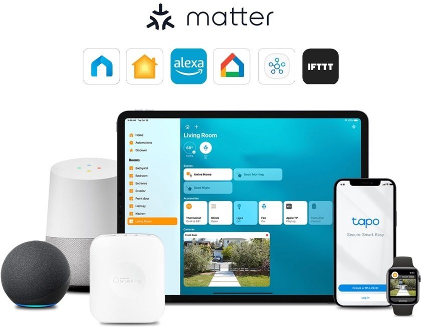 Tapo S112 je plne kompatibilný s technológiou Matter, čo znamená, že ho bez problémov integrujete do systémov ako Apple Home, Amazon Alexa, Google Home, Samsung SmartThings či IFTTT. Ovládanie je možné cez aplikáciu Tapo, hlasovými príkazmi alebo vzdialene cez internet. Modul podporuje aj Bluetooth, vďaka čomu je možné ho konfigurovať aj bez Wi-Fi pripojenia – ideálne pri výpadku siete alebo zmene hesla.