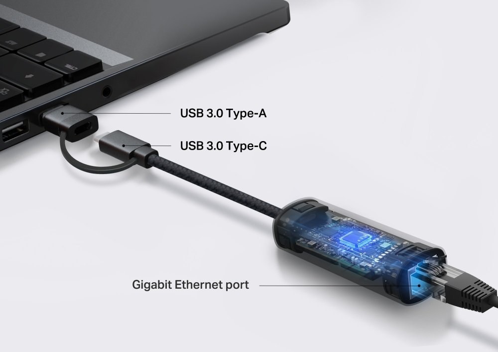 TP-Link UE310C vyniká nad bežnými adaptérmi svojou výnimočnou univerzálnosťou vďaka hybridnému dizajnu konektorov. Tento sieťový adaptér umožňuje jednoduché prepínanie medzi moderným portom USB Type-C a tradičným portom USB Type-A. Vďaka tomuto riešeniu nemusíte nosiť viacero rôznych redukcií – UE310C bez problémov pripojíte k najnovšiemu ultrabooku, tabletu, ale aj k staršiemu stolovému počítaču či inému zariadeniu s klasickým USB portom.