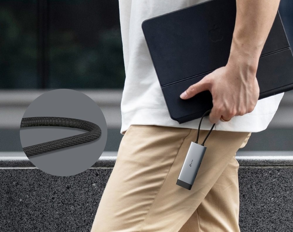 TP-Link UH5020C je navrhnutý s dôrazom na mobilitu a odolnosť. Jeho kompaktné telo z hliníkovej zliatiny a opletený kábel zaručujú dlhú životnosť a odolnosť voči poškodeniu. Samoúložný dizajn konektora navyše zvyšuje prenosnosť a chráni porty pred poškodením počas prenášania. Vďaka modernému vzhľadu sa hodí do každého pracovného prostredia – od kancelárie až po domáce štúdio.