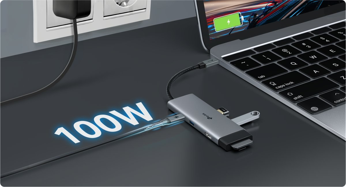 výstup s rozlíšením 4K, rýchly prenos dát, čítačka pamäťových kariet, PD s výkonom až 100 W