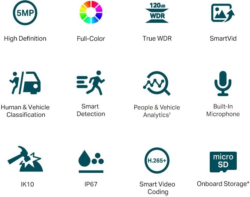 super vysoké rozlíšenie 5 Mpx, 24h Full-Color, odolnosť proti vandalizmu IK10 a vodotesnosť IP67