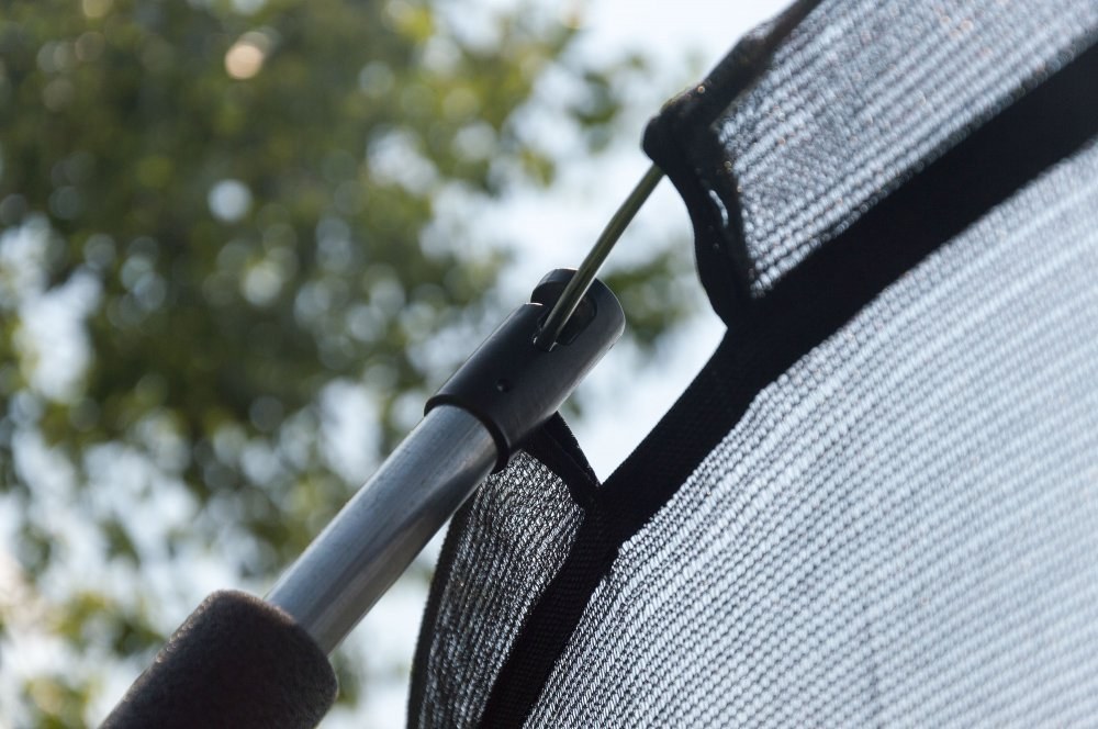 Veľkú pozornosť sme venovali aj spoľahlivému zakrytiu pružín trampolíny pre minimalizáciu rizika poranenia pri skákaní na trampolíne. Skákacia plocha záhradnej trampolíny, ktorú kryté pružiny trampolíny držia, je z protišmykového materiálu. Ochranná sieť záhradnej trampolíny G21 Easy Jump je pevná a husto prepletená, aby sa predišlo možnému zachyteniu (napríklad prsta) v oku siete.