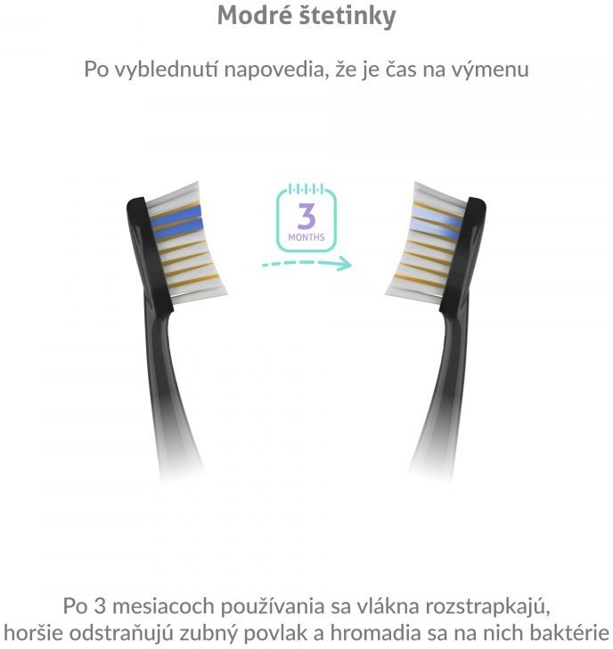 Hlavice disponujú modrými štetinkami, ktoré indikujú mieru opotrebovania. Jednoducho poznáte, že je načase hlavicu vymeniť.