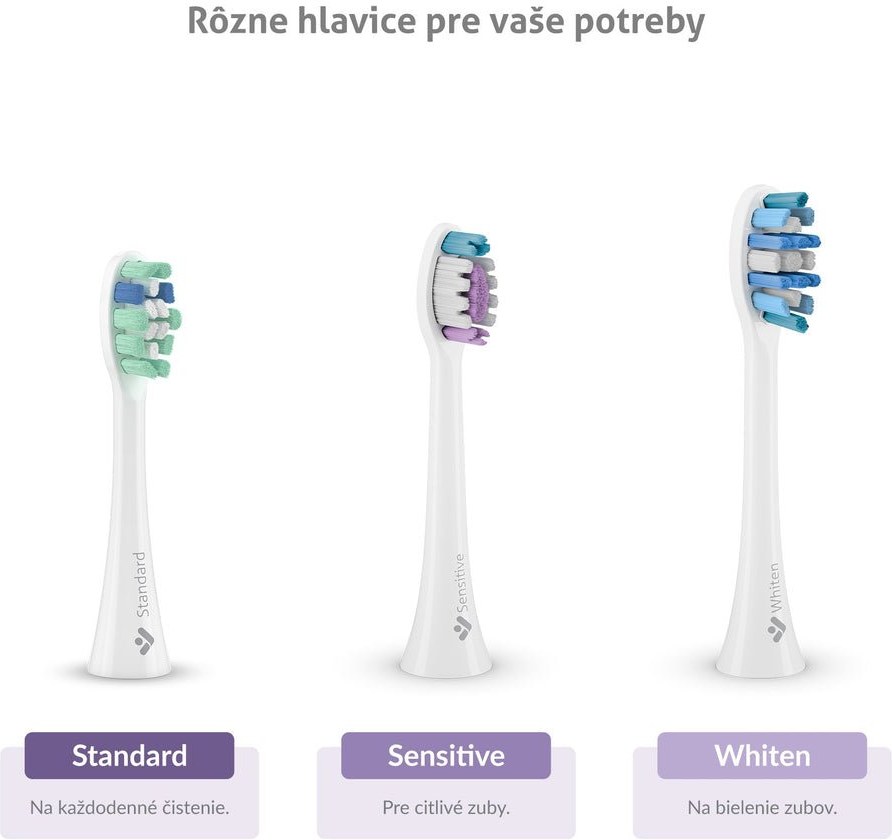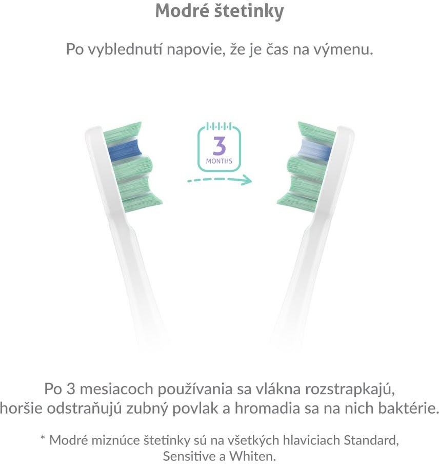 Balenie obsahuje celkom 4 hlavice - 2x Standard a po jednom Sensitive a Whiten.Indikácia výmeny hlavíc