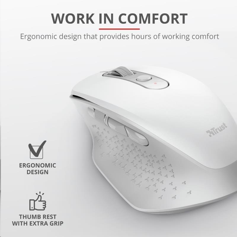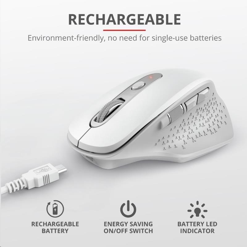 Trust bezdrôtová myš Ozaa Rechargeable, tichý klik, biela