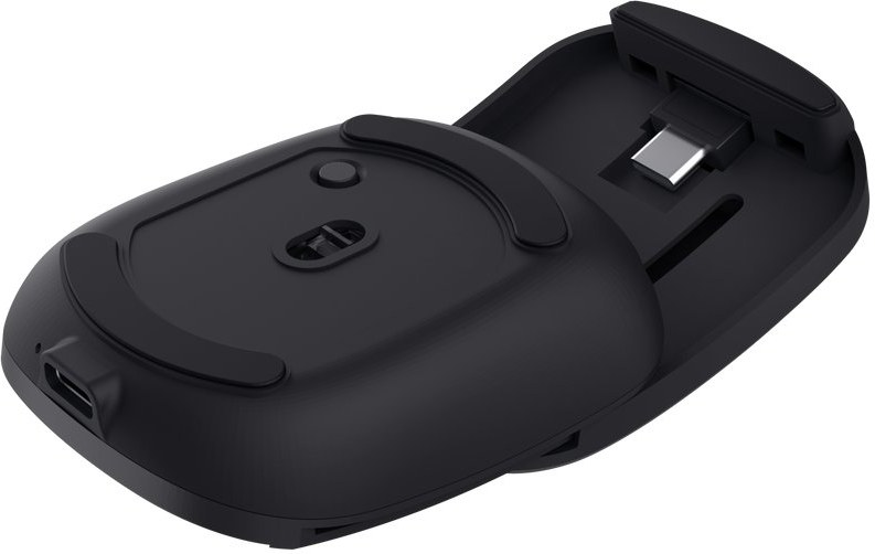 myš, kancelárska, pre pravákov, USB-C bezdrôtový prijímač, optický senzor, nepodsvietená, 6 tlačidiel, tichý klik (silent click), max. citlivosť 2400DPI, čiernaZobraziť viac