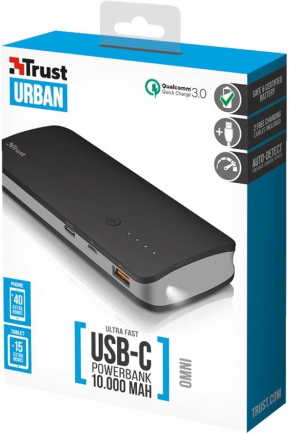 Trust Omni Ultra Fast Powerbank, 10000 mAh, čierna