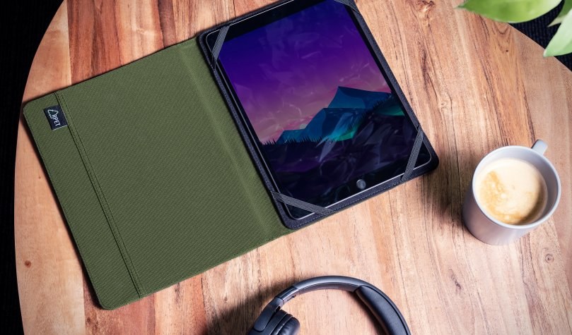 univerzálne puzdro pre tablety do 10 palcov; vyrobené z recyklovaných PET materiálov