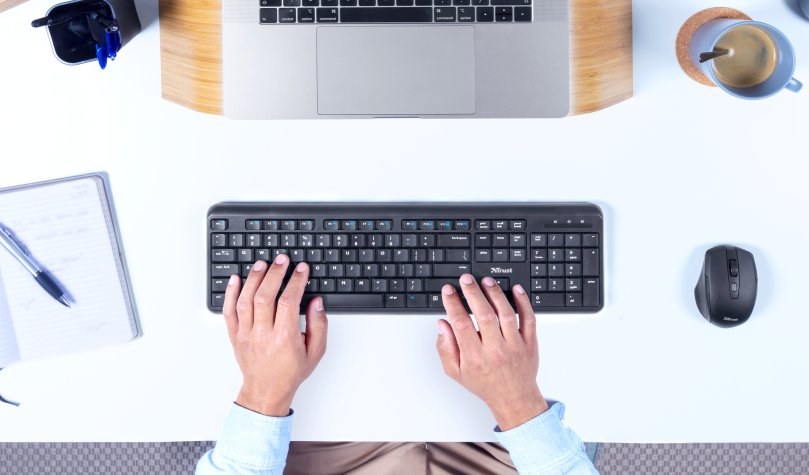Bezdrôtová a tichá klávesnica a myš pre hodiny pracovného pohodlia