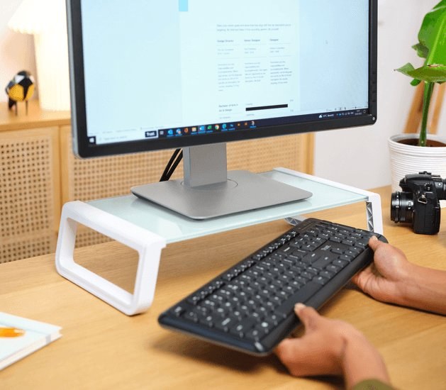 Zdvihnutím notebooku alebo monitora vám tento stojan poskytne dodatočnú úroveň priestoru pod ním, aby ste si mohli jednoducho odložiť klávesnicu alebo iné príslušenstvo, keď ho nepotrebujete. Pohodlnejšia a organizovanejšia práca, tu je!