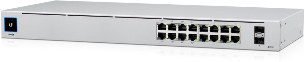 Je osadený 16x Gbit ethernetovými portami a dvoma SFP portami.