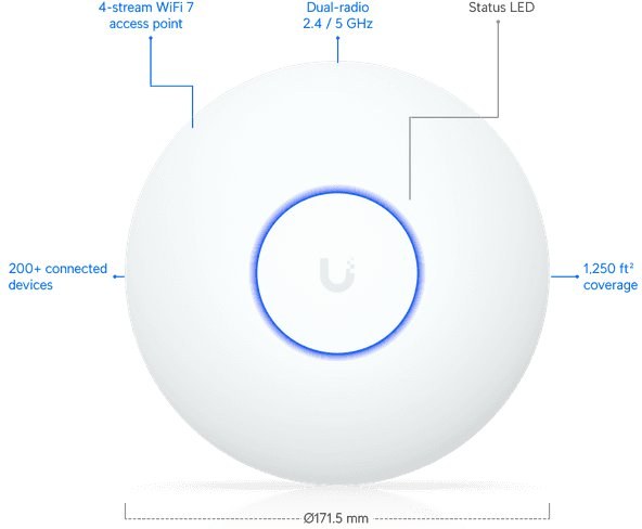 Ubiquiti U7-Lite je cenovo najdostupnejší WiFi 7 UniFi AP. Je to dvojpásmový prístupový bod s rýchlosťou až 4,3 Gb/s v pásme 5 GHz a až 688 Mb/s v pásme 2,4 GHz a pokročilým šifrovaním WPA3. Model U7-Lite je navrhnutý tak, aby poskytoval pokrytie WiFi pre vašu domácnosť, kanceláriu, hotel alebo sklad. Plná podpora roamingu zabezpečuje bezproblémové odovzdávanie pripojených klientov medzi prístupovými bodmi. Na pripojenie k sieti je AP vybavený portom 2,5G ETH, ktorý sa používa aj na napájanie pomocou 802.3af PoE alebo pasívneho PoE v rozsahu 42,5-57 V DC, injektor PoE nie je súčasťou dodávky.Výhody riešení UniFi
