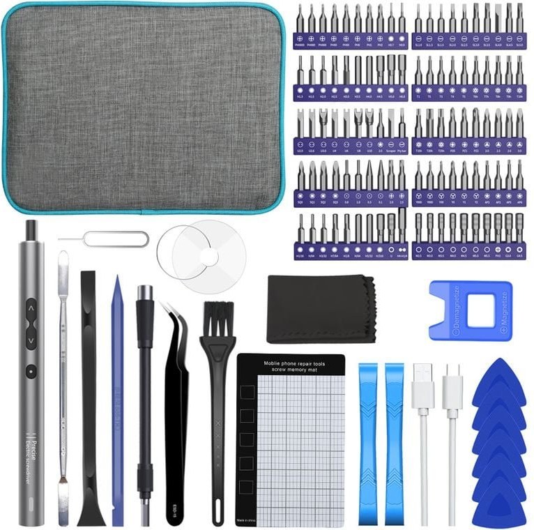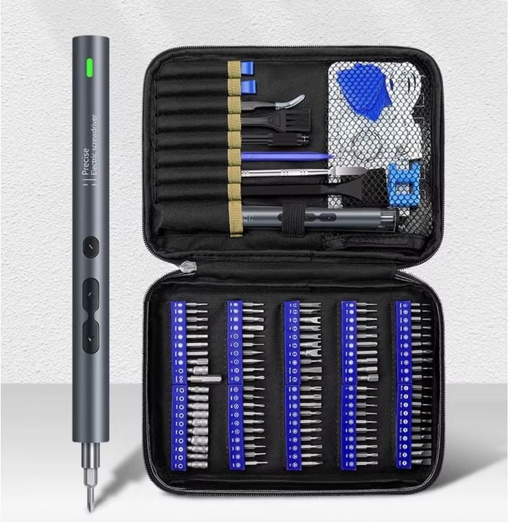 Univerzálna sada akumulátorových skrutkovačov s bohatým príslušenstvom, ktorá šetrí čas a pomáha každému domácemu majstrovi a profesionálovi. Súprava je navrhnutá tak, aby pokryla širokú škálu opráv – od jemnej elektroniky až po domáce spotrebiče.V balení nájdete 100 nástavcov a veľké množstvo príslušenstva, ako napríklad magnetizér, pinzetu, čistiacu handričku, predlžovaciu tyč, páčidlá, magnetickú podložku a samozrejme to hlavné -elektrický skrutkovač s LED svetlom. Všetko je prehľadne usporiadané v elegantnom, pevnom úložnom kufríku, ktorý je ideálny na cesty alebo do zásuvky.