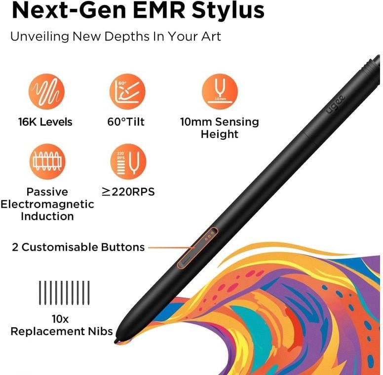 Prispôsobte si pracovný postup svojim osobným preferenciám. M908 poskytuje prispôsobiteľný systém výberu pracovnej plochy, ktorý umožňuje prispôsobiť povrch vašim špecifickým potrebám. Vďaka možnosti prepínania režimu plochy tablet plynule prechádza medzi horizontálnou a vertikálnou orientáciou, čo uľahčuje jeho používanie s veľkými monitormi počítačov a menšími mobilnými zariadeniami. S tabletom Ugee M908 bude váš zážitok veľmi podobný kresleniu na tradičný papier. Môže sa pochváliť rozlíšením 5080 LPI a obsahuje praktický stylus EMR, ktorý ponúka presné a prirodzené kreslenie so 16 000 úrovňami citlivosti na tlak a funkciou naklonenia pod uhlom až 60°.Stylus s programovateľnými tlačidlami