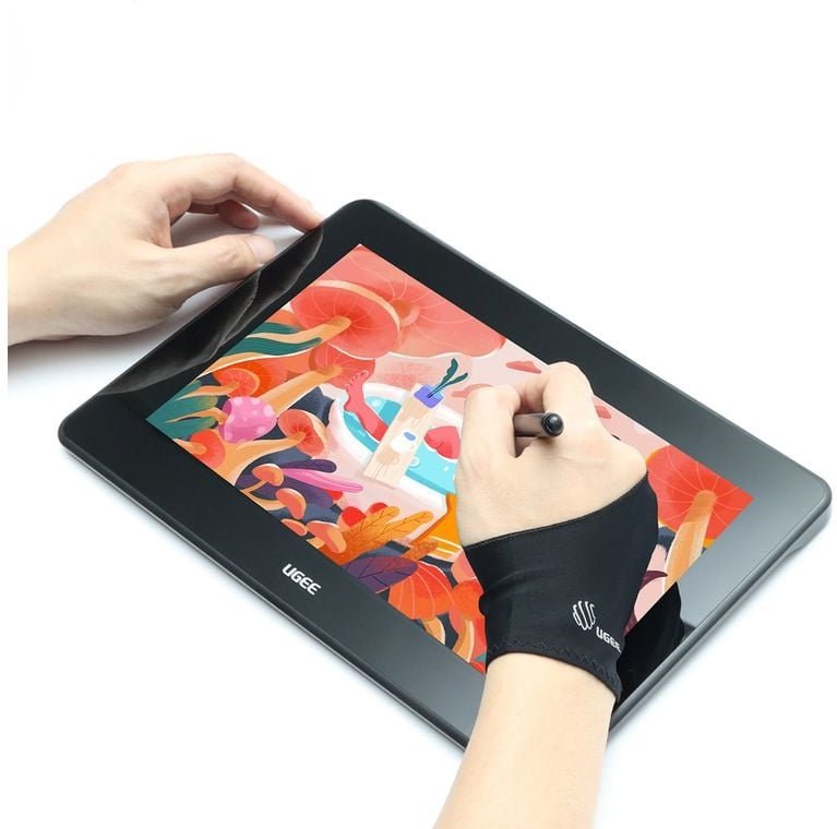 Vysokokvalitná kresliaca rukavica Ugee je určená pre umelcov, ktorým pomáha znížiť trenie rúk o kresliace tablety a eliminovať mastnotu na obrazovke. Rukavica je vhodná pre pravákov aj ľavákov a pokrýva len dva prsty na každej ruke (prstenník a malíček), ktoré sa bežne nepoužívajú na ovládanie tabletu, ale môžu s ním ľahko prísť do nežiaduceho kontaktu. Jedinečná konštrukcia s dvoma prstami umožňuje, aby sa rukavica flexibilne roztiahla a prispôsobila dlani, takže je vhodná pre väčšinu ľudí a pohodlne sa nasadzuje a vyzlieka. Používanie rukavice na digitálne kreslenie ľahko zabraňuje vzniku šmúh a škvŕn na rukách a tablete, vďaka čomu je práca s elektronickým kreslením jednoduchšia a príjemnejšia.Jednoduché nasadenie a pohodlné používanie