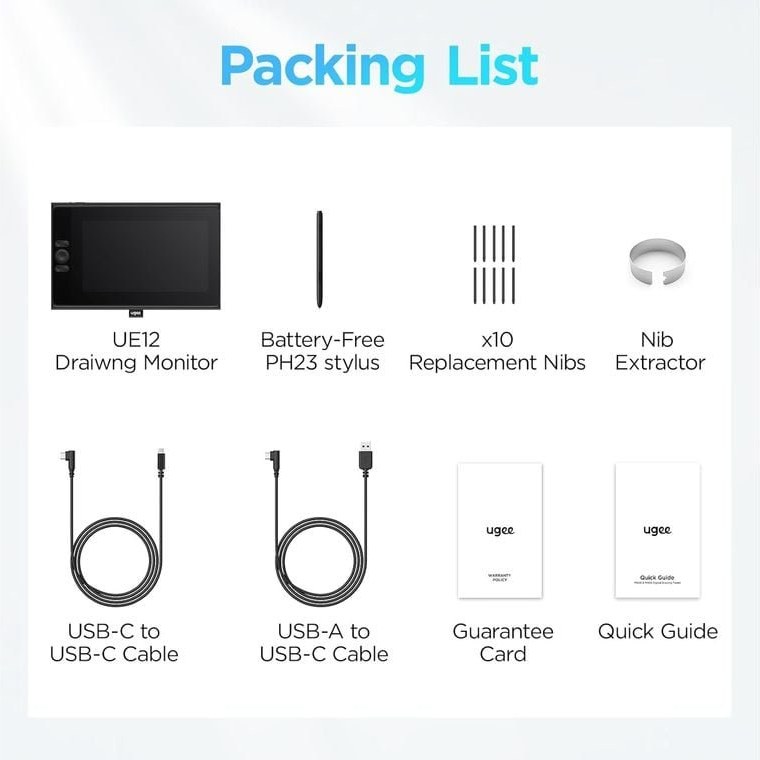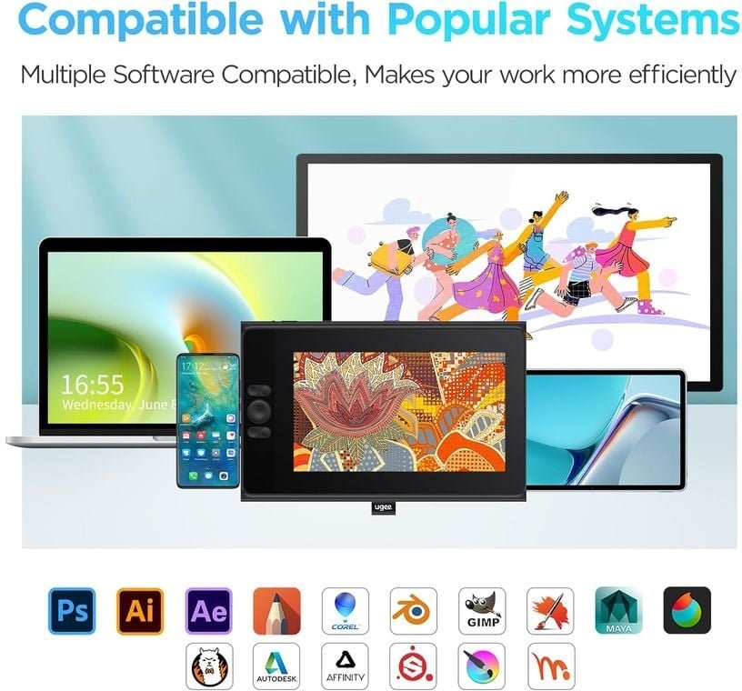 Ugee UE12 Plus je pokročilý grafický tablet navrhnutý tak, aby spĺňal požiadavky profesionálnych umelcov aj amatérov. Vďaka množstvu funkcií, presnosti a užívateľsky prívetivému dizajnu je nepostrádateľným nástrojom pre každého, kto chce efektívne tvoriť a pracovať. Vďaka presnej reprodukcii farieb a praktickým funkciám uľahčuje UE12 Plus plynulý a príjemný tvorivý proces. Tento grafický tablet sa môže pochváliť rozsiahlym 147 % farebným gamutom sRGB, ktorý ponúka živú a jemne vyladenú reprodukciu farieb. Používatelia môžu bez námahy prepínať medzi farbami sRGB, Adobe RGB a DCI-P3, čo im umožňuje prispôsobiť si vizuálny zážitok podľa svojich predstáv. Okrem toho UE12 Plus umožňuje až 99 % pokrytie farieb, čím zabezpečuje bohaté a realistické farby. Umelci sa môžu spoľahnúť, že ich výtvory budú odrážať zamýšľané odtiene a jemné gradienty. Tablet je vybavený plne laminovaným 11,9-palcovým displejom, ktorý zabezpečuje maximálnu presnosť pri každom ťahu, pričom hrot pera a kurzor sú dokonale zarovnané.Kombinácia presnosti a pohodlia