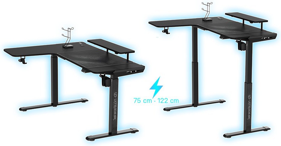 Ultradesk herný stôl WINGER, 111x155x60 cm, 75-122 cm, Čierny